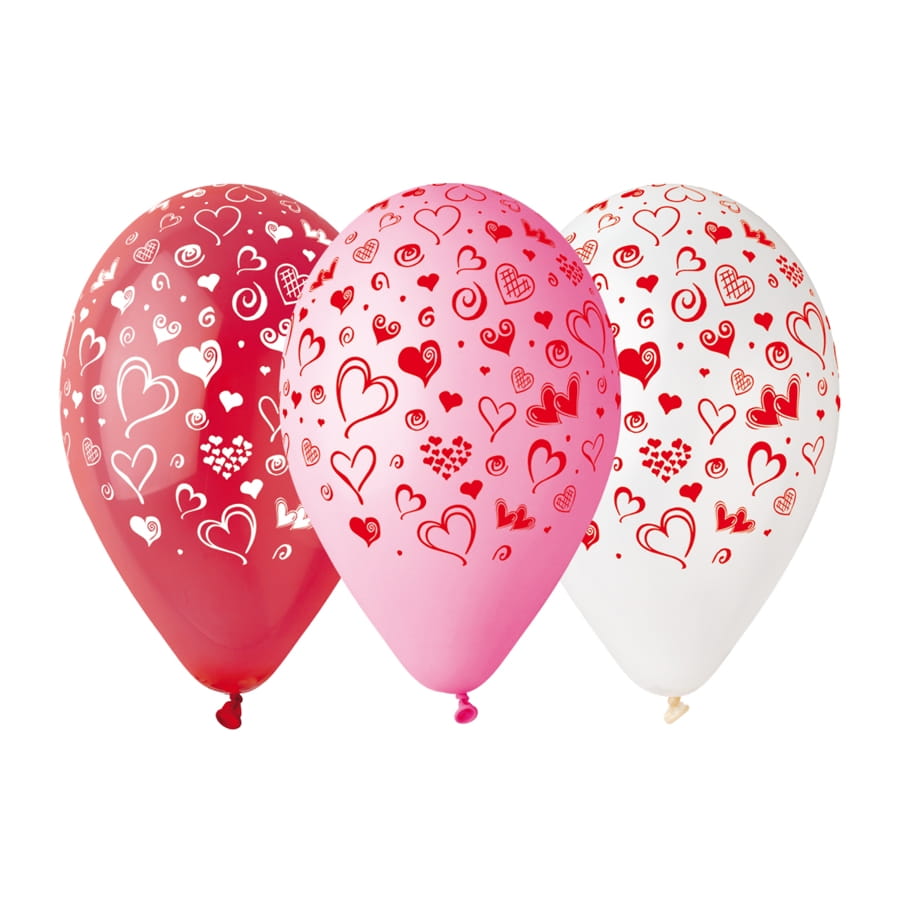 Plein de coeurs et de ballons partout ! Voilà qui est parfait pour un mariage ou lors de la fête de l'amour. Ces ballons imprimés motifs coeurs peuvent apporter cela avec les jolis imprimés représentant différentes formes de coeurs rouges ou blanches sur des ballons de 30 cm de diamètre de couleur bleue, rose ou rouge.