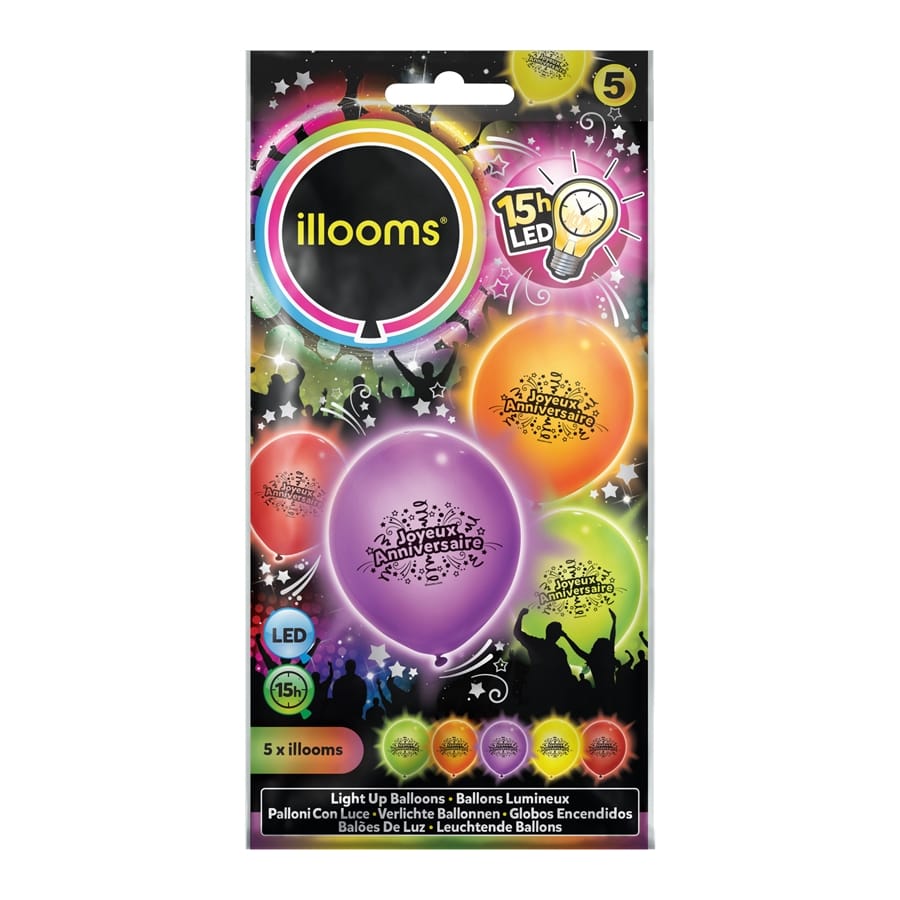 Rendez votre soirée d'anniversaire plus originale et attrayante grâce à des ballons joyeux anniversaire lumineux. Le produit que nous vous proposons ici est constitué d'un paquet de cinq ballons "Joyeux anniversaire" multicolores dotés de LED d'une durée de luminosité de 15 heures, d'une dimension de 21 x 10,5 cm. Pas le choix des couleurs à la commande.