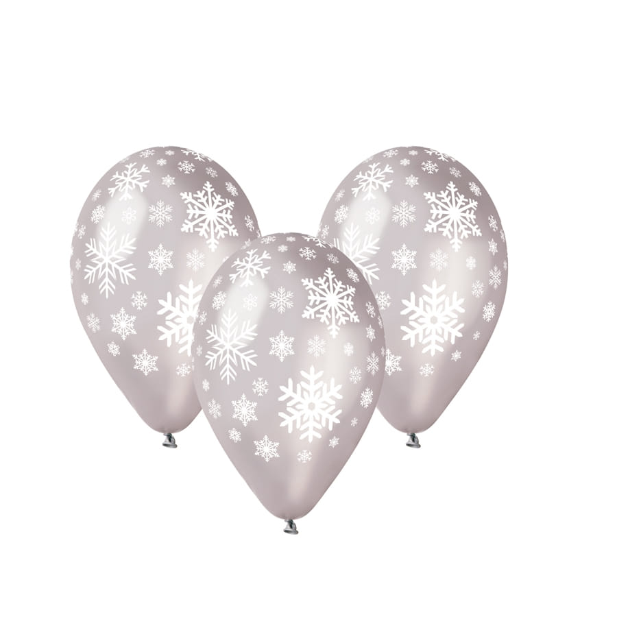 Lors des célébrations de Noël et du Nouvel An, il vaut mieux utiliser des décorations spéciales pour ces fêtes, comme ces ballons motifs flocons de neige, argentés. Ces ballons de 30 cm de diamètre sont d'une belle couleur argentée avec des motifs de flocons de neige de différentes formes en blanc dessus.
