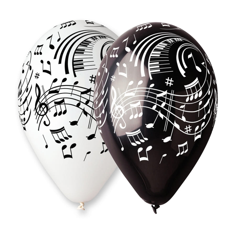 Il s'agit de ballons gonflables floqués de motifs de notes et de partitions musicales.