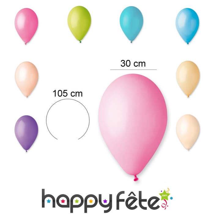 Les ballons sont indispensables pour la décoration d'une fête comme la pacques, un mariage, un anniversaire ou la noël, le nouvel an ou pour célébrer une naissance. De couleur pastel, vendus en lot de 100 ayant pour diamètre 30 cm avec une circonférence 105 cm, des ballons en latex 100 % naturel et biodégradable.