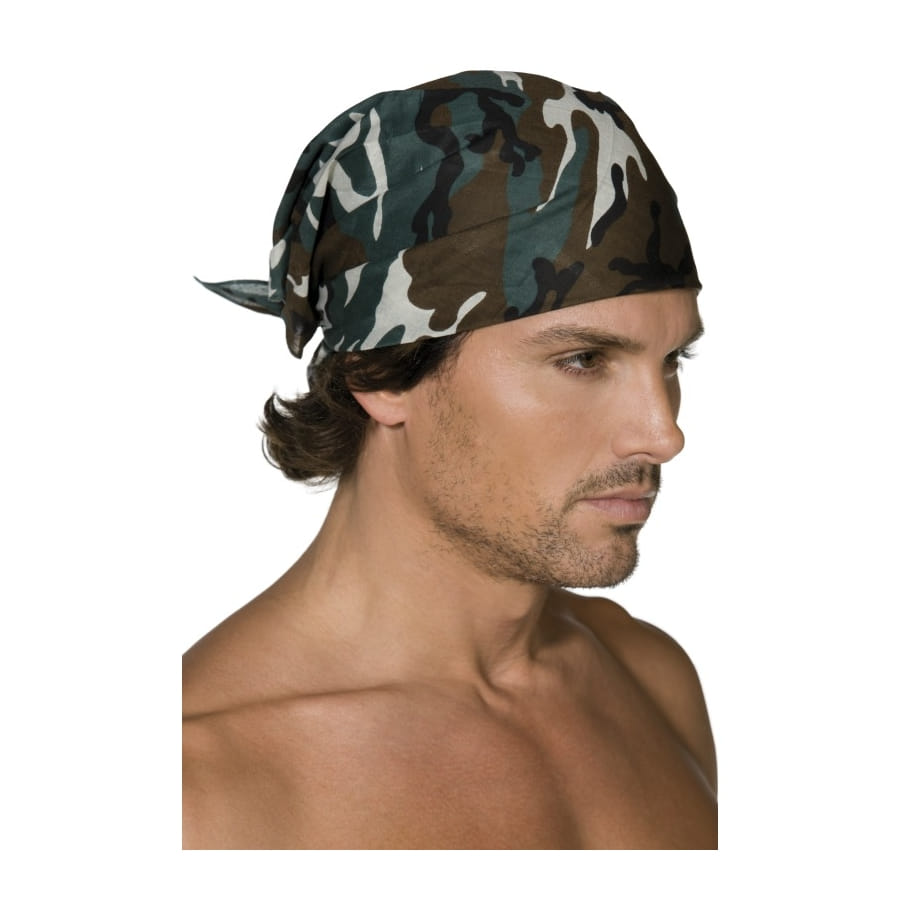 Bandana de camouflage d'armée de couleur blanche, grise, marron et noire, pour homme ou adolescent. Ce bandana complètera à merveille un déguisement de soldat ou de guerrier pour une fête à thème.