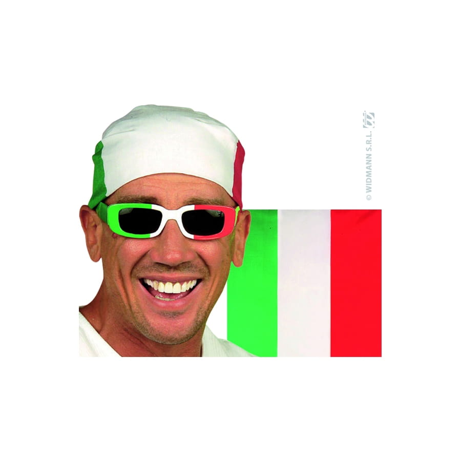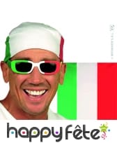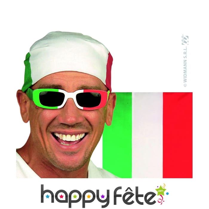 Italia! Italia! Bandana blanc, rouge et vert aux couleurs de l'Italie. Cet accessoire mesure 55 centimètres carrés. Il est idéal pour compléter une tenue de supporter d'Italie.