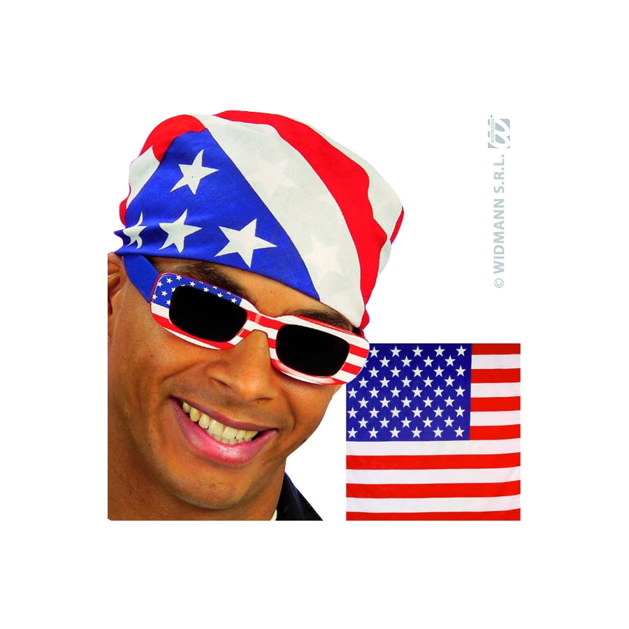 Bandana aux couleurs des états unis d'Amérique. Cet accessoire mesure 55 centimètres carrés. Il est idéal pour compléter une tenue de supporter.