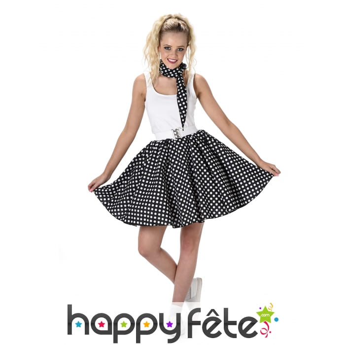Le bandana et jupe années 50 noir pois blancs est pour femme.