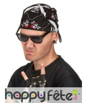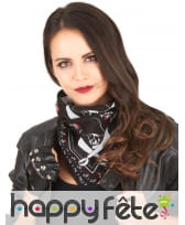 A nouer sur votre tête, au cou ou sur votre bras, ce Bandana pirate imprimé têtes de mort complètera votre déguisement de rebelle.