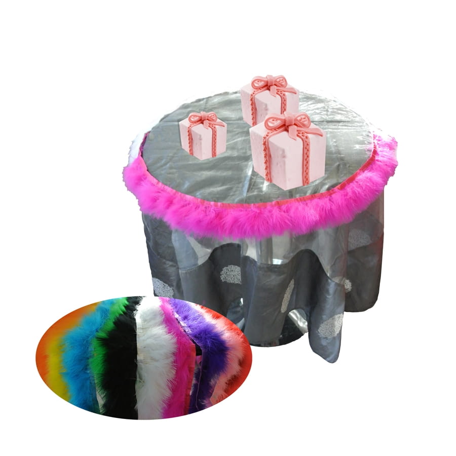 Cette magnifique bandes de marabout est destinée à la décoration de table ou de buffet ou encore de déguisements de carnaval etc. Pour l'utiliser, il suffit de la coller ou de la coudre à l'endroit désiré. Elle se décline en plusieurs couleurs : blanche, fuchsia, jaune, noir, orange, rose, rouge, turquoise, verte ou violette. Et elle peut également être utilisée pour du bricolage.
