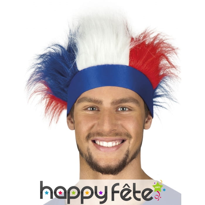 Le bandeau avec cheveux synthétiques bleu, blanc et rouge est aux couleurs de la France.