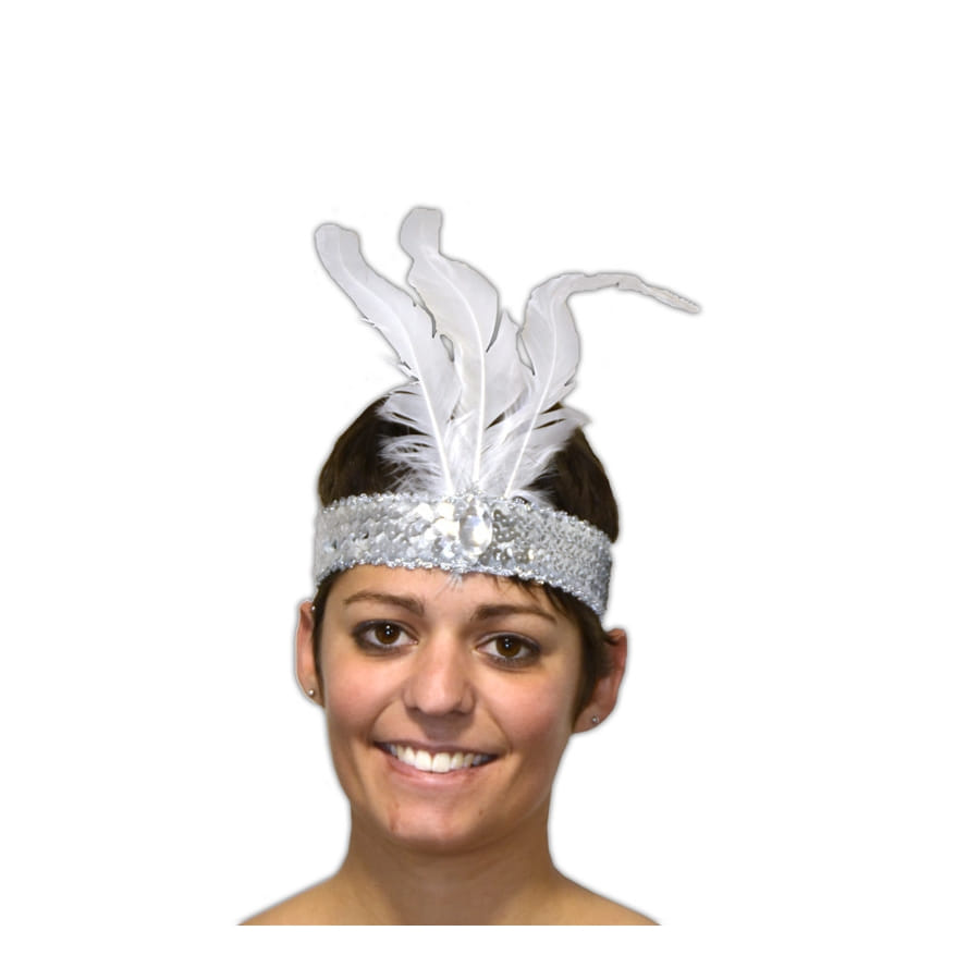 Laissez-vous tenter par ce bandeau Charleston argenté orné de plumes noires. Cet accessoire est parfait pour un déguisement de danseuse de cabaret des années 20-30.