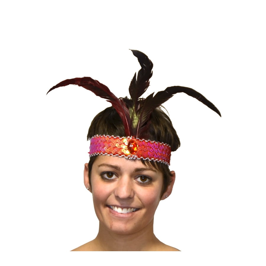 Soyez original et optez pour ce bandeau des années 20 pailleté rouge orné de 3 plumes noires. Cet accessoire de charme vous permettra de vous transformer en danseuse de cabaret des années 20-30.