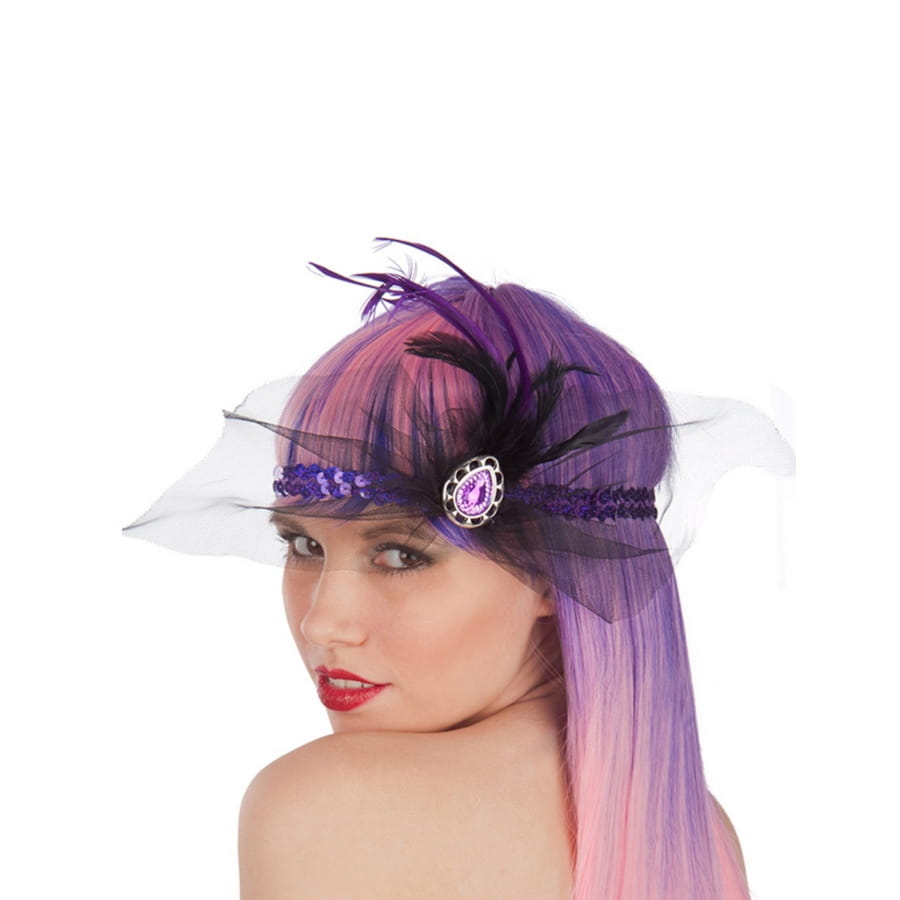 Le bandeau Charleston violet sequins et gros bijou est un accessoire pour femme.