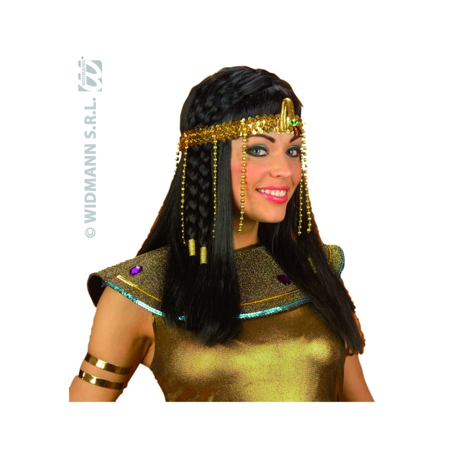 Bandeau en perles dorées surmonté d'une tête de serpent. Le bandeau mesure environ 20 centimètres de diamètre et est orné de perles alignées de part et d'autre. Il est idéal pour compléter votre déguisement de Cléopâtre.
