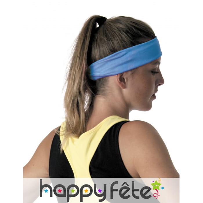 Complétez une tenue de sportive des années rétro, avec le bandeau de sport bleu fluo.