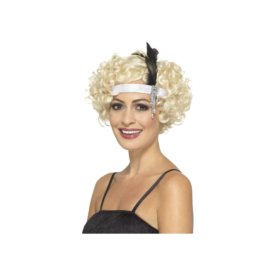 Pas besoin de chercher loin pour finaliser votre déguisement Mesdames, optez pour ce bandeau de tête blanc en satin, charleston. Le côté satiné de la matière procure à ce bandeau un effet un peu brillant, contrasté par la jolie plume noire qui lui sert d'ornement, le tout finalisé par un bijou de teinte argentée. Vous serez tout juste resplendissante !