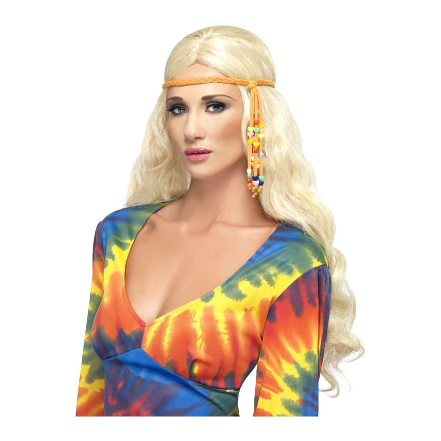 Bandeau hippie tressé de couleur orange , pour femme. Le bandeau comporte plusieurs petites tresses avec perles multicolores. Habillez-vous en couleurs et transformez-vous en hippie des années 60.