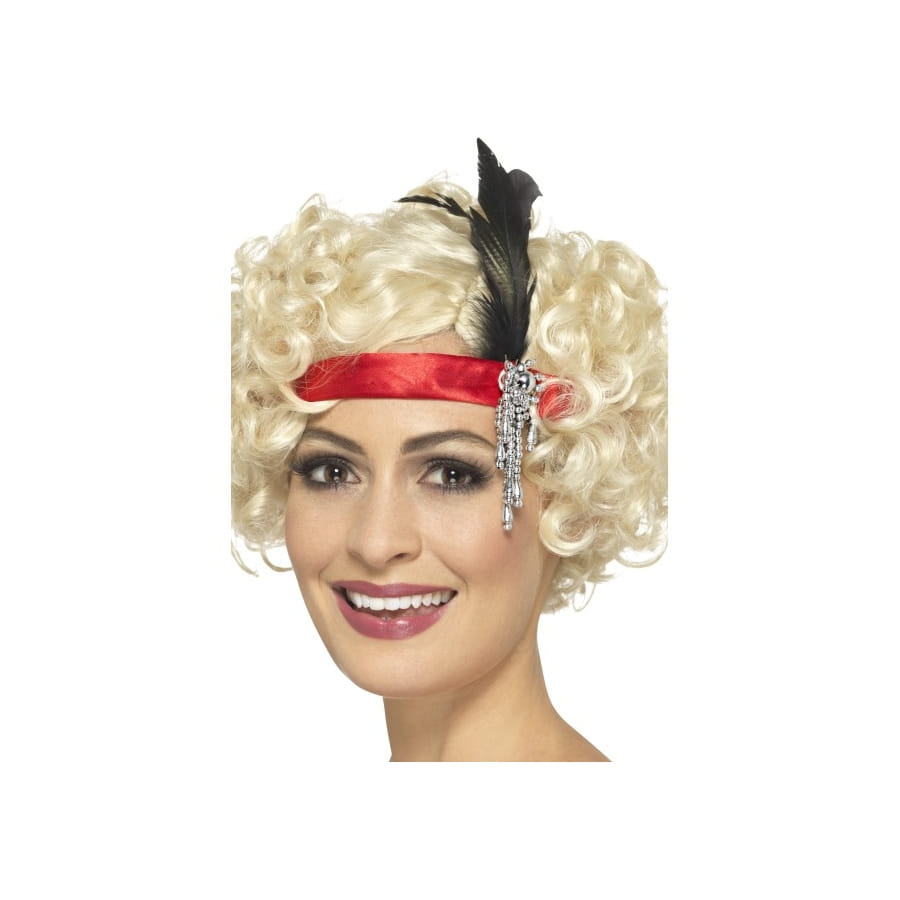 Le rouge était très en vogue dans les années 20 et 30, choisissez donc ce bandeau rouge charleston en satin pour finaliser votre tenue. Ce fin petit bandeau se portera facilement sur une coiffure de préférence blonde et bouclée, avec sa petite plume noire en décoration. Si vous n'avez pas ce genre de coiffure, vous en trouverez facilement parmi nos perruques.