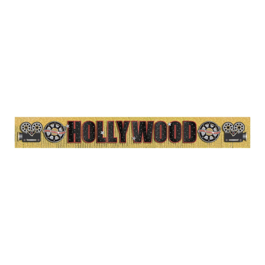 Bienvenue à Hollywood, le paradis du cinéma américain ! Mettez en avant cette banderole Hollywood de 3 mètres lors d'un grand événement. Il s'agit d'un article de décoration présenté dans la couleur or et bronze. La banderole affiche l'inscription "Hollywood" en grandes lettres. Elle vous fera évader dans un univers de rêve, notamment si vous êtes adeptes du cinéma.