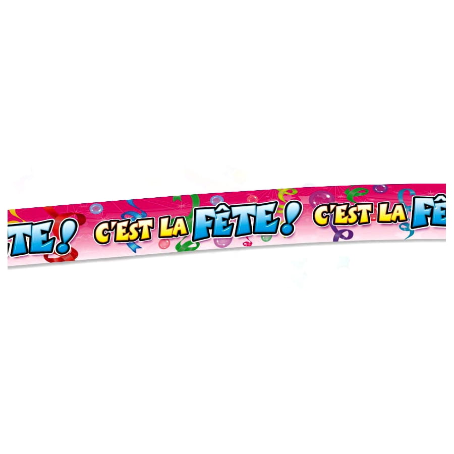 Elle présente sur tout le long l'inscription "C'EST LA FÊTE !" qui revient régulièrement.