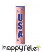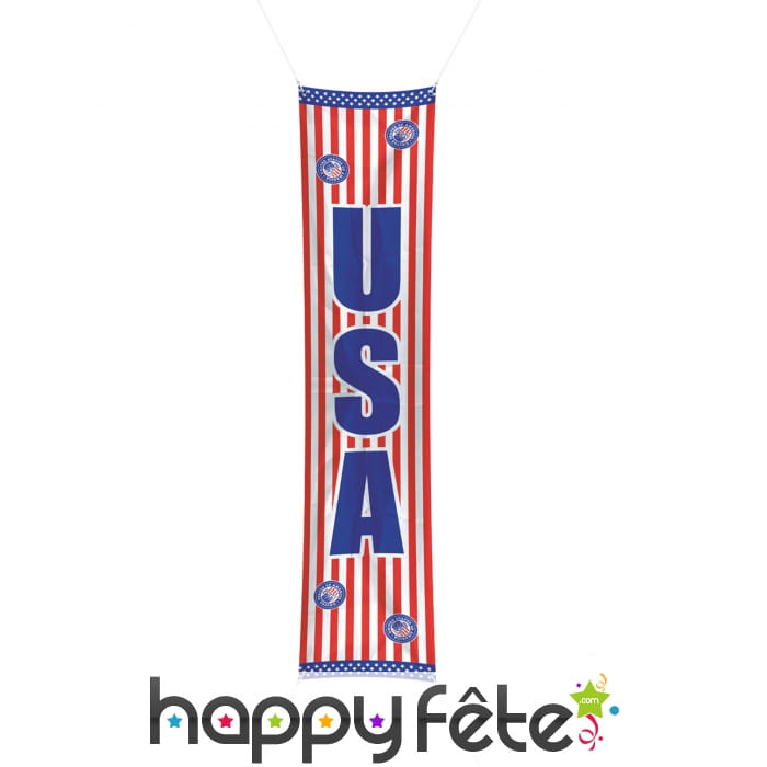 Au centre de la bannière, le mot "USA" est écrit en lettres majuscules de couleur bleue.