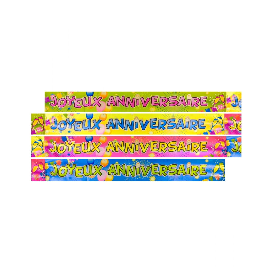 Pour souhaiter un joyeux anniversaire à un proche, rien ne vaut cette bannière métallisée d'Anniversaire 3,6 m de long et 12 cm de large.