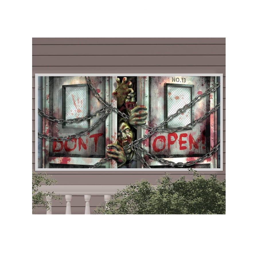 Cette Bannière porte scellée avec zombies 160 x 85 cm est en plastique et sera idéale pour compléter une décoration d'halloween.