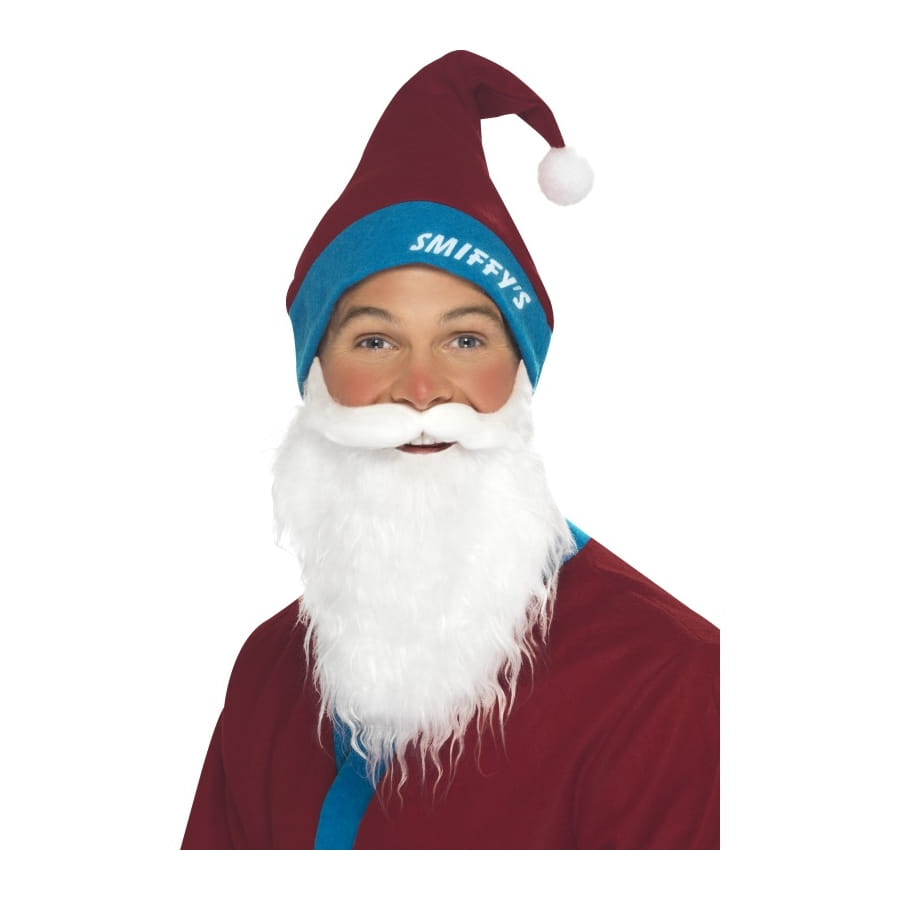 Déguisement de Père Noël pour homme. Ce set est composé d'une barbe blanche et d'un chapeau bleu et rouge avec pompom. Le rebord du bonnet est imprimé du logo de Smiffy's. C'est un déguisement idéal pour faire changer de look au Père Noël.