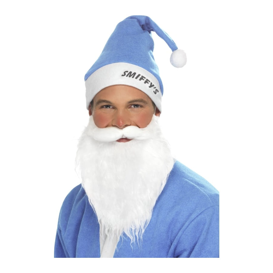 Déguisement de Père Noël de la marque Smiffy's, pour homme. Le set comporte un chapeau bleu à rebord et pompom blancs et une barbe entièrement blanche. Le tout donne une allure fraîche et glaciale, idéale pour la Noël.