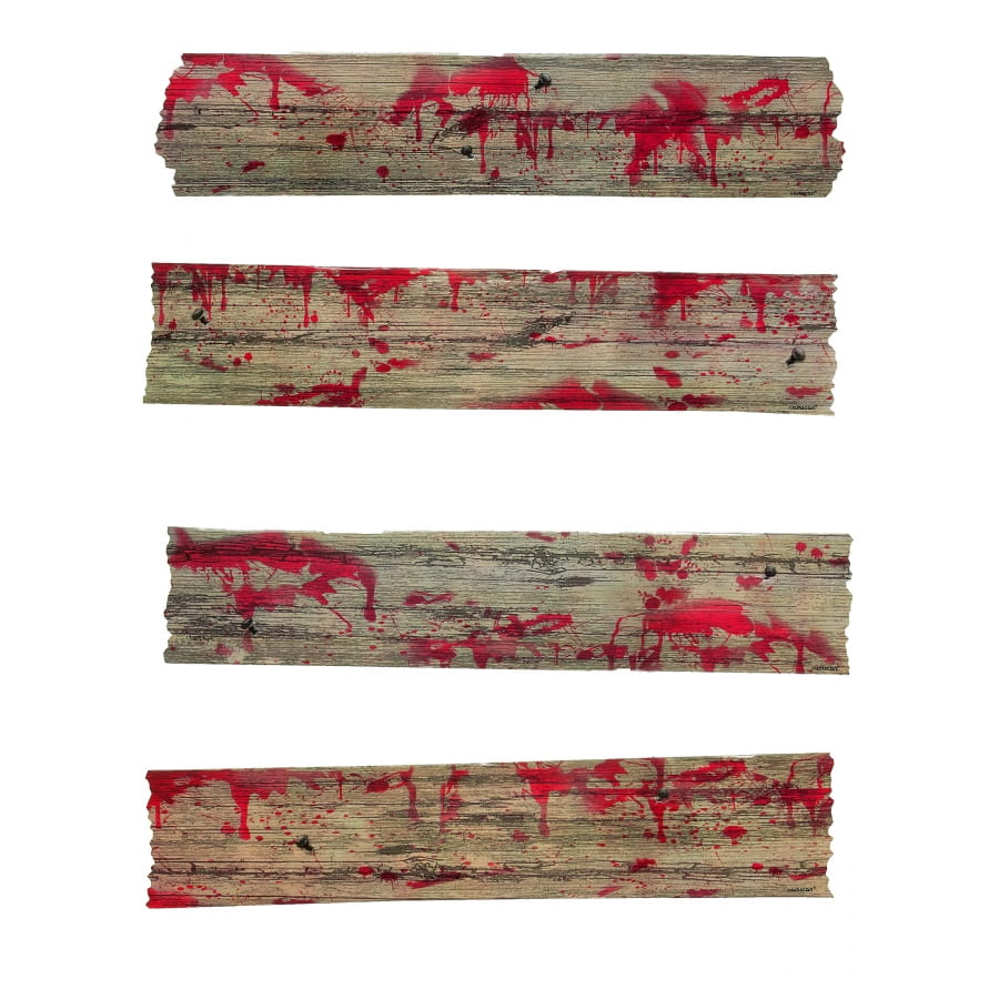 Elles sont fournies par lot de 4 et représentent des barricades tâchées de sang frais.