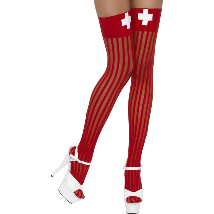 Bas d'infirmière de couleur rouge et ornés de croix blanches. Cet accessoire fera de vous une infirmière ultra sexy pour une soirée romantique le jour de la Saint Valentin.