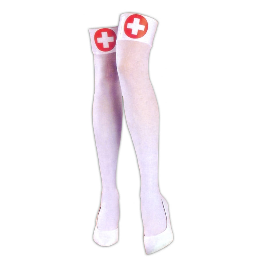 Interprétez à la perfection le rôle d'un personnel médical lors de la Saint-Valentin. Vous apporterez originalité et charme à la soirée avec un déguisement d'infirmière. Adoptez ces jolis bas d'infirmière. Fins, souples et montants jusqu'à la cuisse, ils offrent une belle couleur blanche accompagnée d'une petite touche de rouge. Cet accessoire de séduction se mariera parfaitement bien avec des talons hauts blancs.