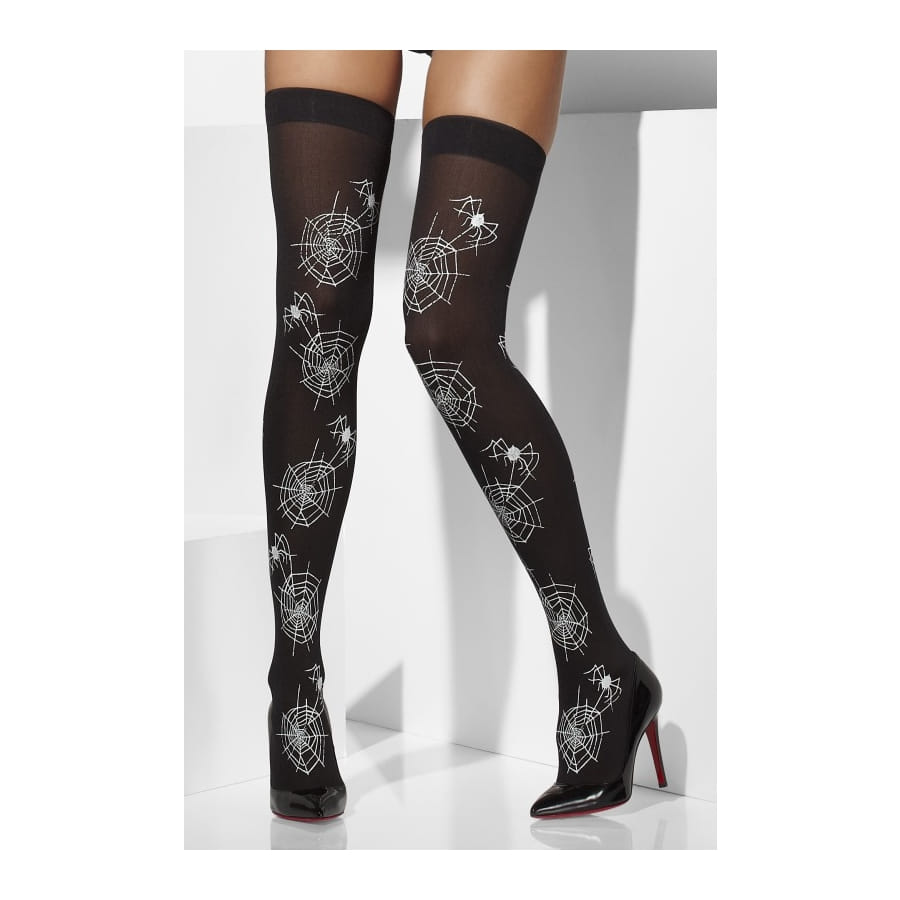 A Halloween, tous les accessoires sont bons s'ils peuvent faire peur. Mesdames, vous avez dépassé l'âge des petites farces, mais nous avons quand même de quoi agrémenter d'une manière originale votre tenue d'Halloween. Nous vous présentons ces bas de couleur noire un peu spéciale, parce qu'ils sont décorés avec des toiles et des araignées de couleur blanche partout! Très astucieux! Disponible en taille unique et lavage séparé à la main conseillé.