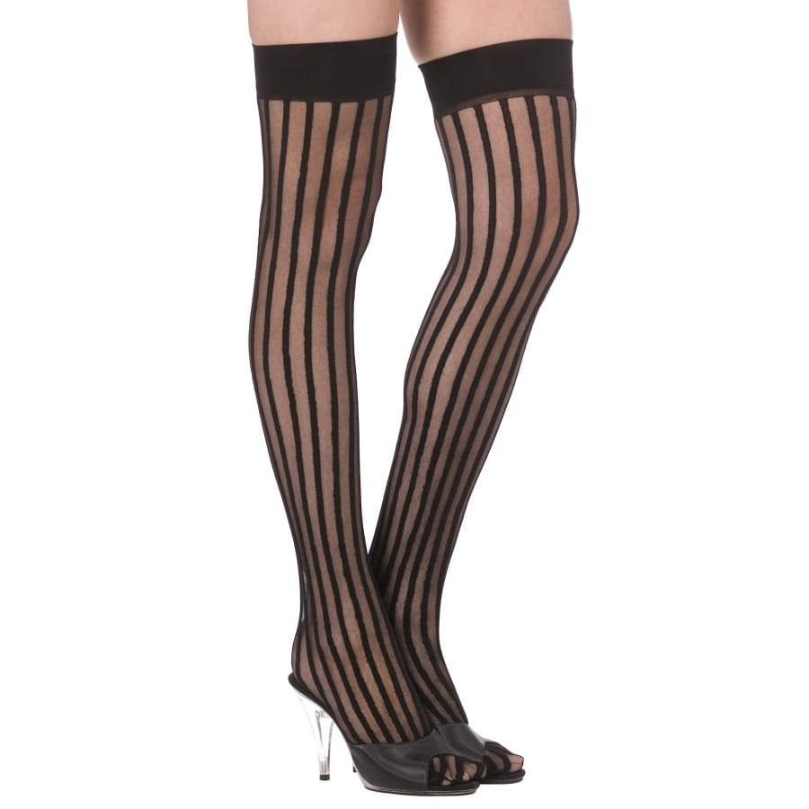 Avez-vous envie de mettre une mini-jupe ou une petite robe courte lors d'une soirée spéciale alors qu'il fait trop froid pour cela ? Eh bien, vous n'avez qu'à mettre une jolie paire de bas collants. Et faites attention quand vous les choisirez, optez pour ceux qui mettront bien la tenue en valeur. Ceux que vous voyez ici sont idéaux pour une petite robe Charleston ou une robe de soirée courte. Ils sont de couleur noire avec des lignes verticales et sont vendus en taille unique. Et l'on vous suggère de laver ces bas séparément à la main.