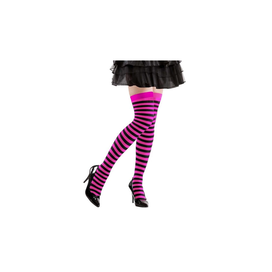 Ces bas rayures noires et roses, 70 deniers apporteront certainement une touche de couleur et de fantaisie à votre costume.