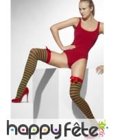 Cette paire de bas est exceptionnelle, en ce sens qu'elle est idéale pour orner autant un déguisement de Noël qu'un déguisement d'Halloween. Ce sont ces belles couleurs rouges et vertes à rayures horizontales qui font cela. De plus, ils sont ornés de très jolis noeuds rouges sur le dessus. Nous préconisons un lavage séparément à la main pour cette paire de bas.