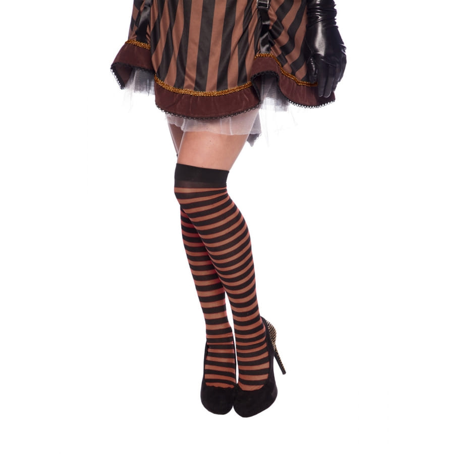 Ces Bas Steampunk pirate ou gothique ligné noir sont assez longs et recouvriront vos jambes jusqu'au-dessus des genoux.