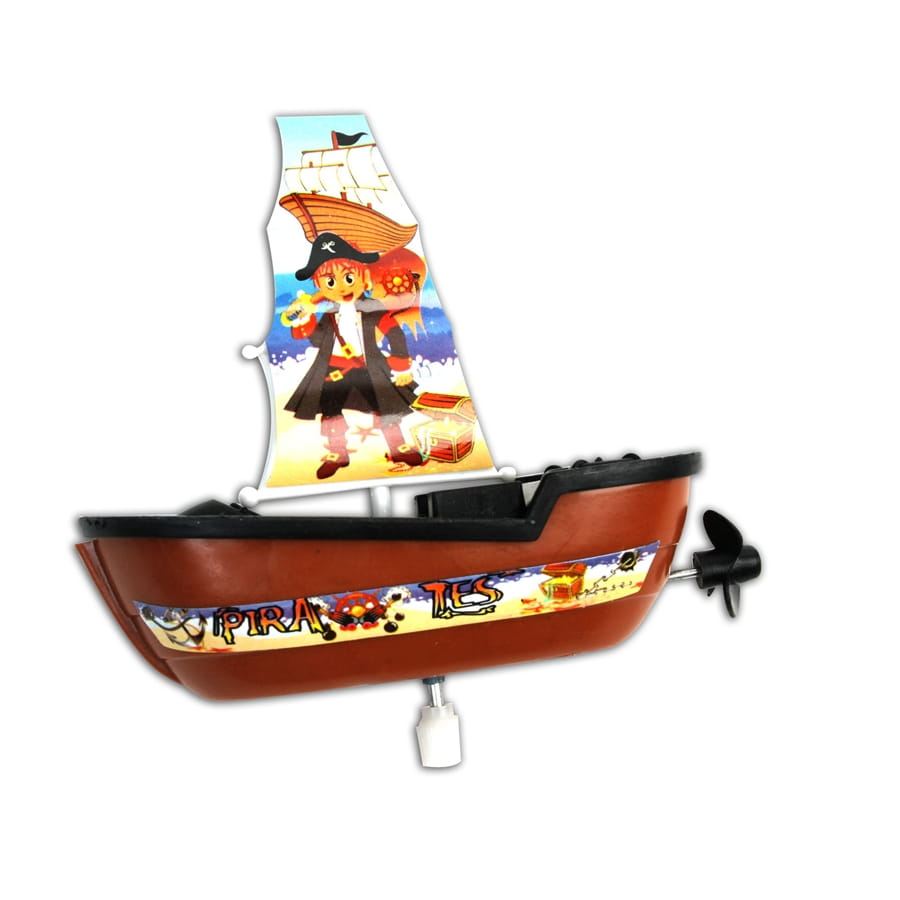 Ce bateau de pirate va plaire à vos enfants. Si vous êtes à la recherche d'un cadeau exceptionnel à leur offrir, ce bateau mécanique est ce qu'il vous faut. En plus, il est tout beau avec les différentes couleurs qu'il y a dessus, à l'instar du voile qui est orné d'un joli dessin de pirate multicolore. Il fait 10 cm de long. Lors de la commande, vous n'aurez pas le choix de la couleur.