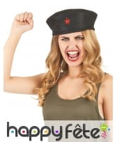L'avant de ce couvre-chef est marqué par une broderie en forme d'étoile rouge.