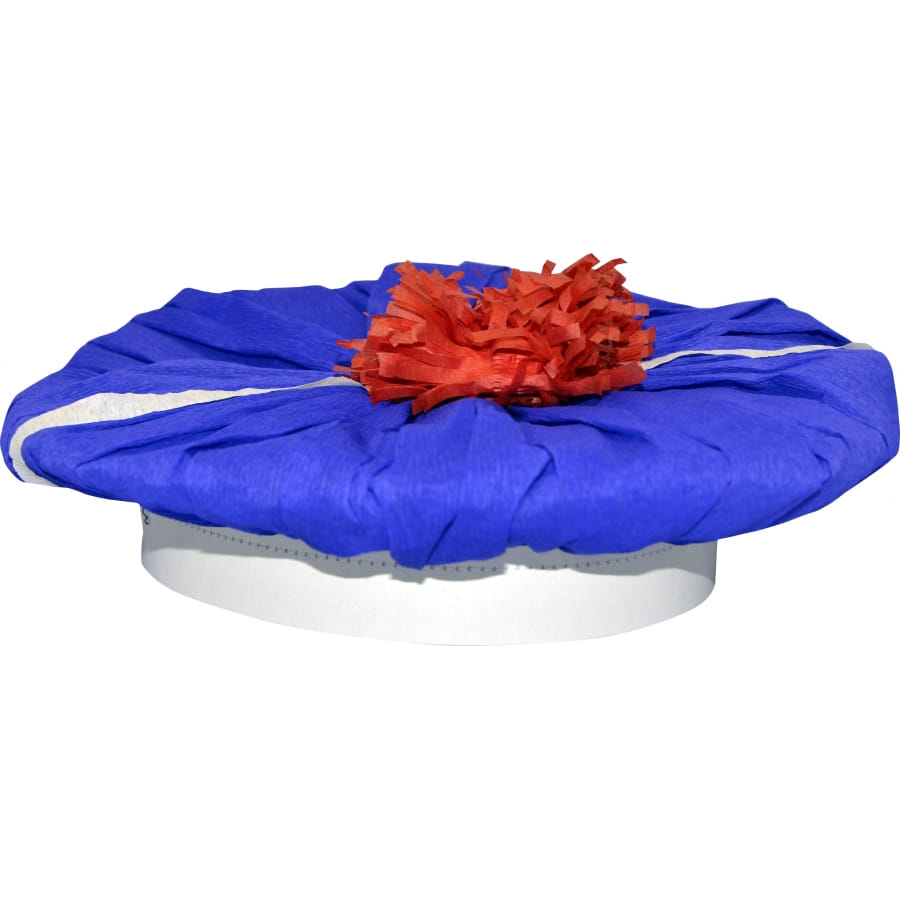 Vous ferez un beau marin avec ce béret de marin en crépon de couleur bleu avec pompon rouge. Cet accessoire est absolument parfait pour compléter avec succès une tenue de marin pour un carnaval.