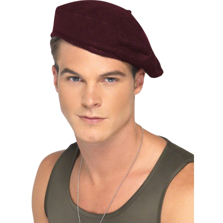 Béret de soldat de couleur bordeaux, pour homme ou adolescent. Cet accessoire sera parfait pour une fête basée sur le thème de la guerre, ou pour un enterrement de vie de garçon ou de jeune fille.