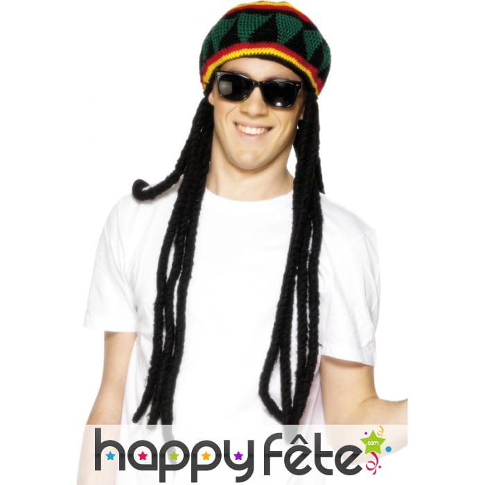 Béret de hippie ou de rasta, de couleur rouge, jaune, noire et verte, pour homme. Le béret donne une impression de tricot et vous ira à merveille pour un festival hippie ou rasta.