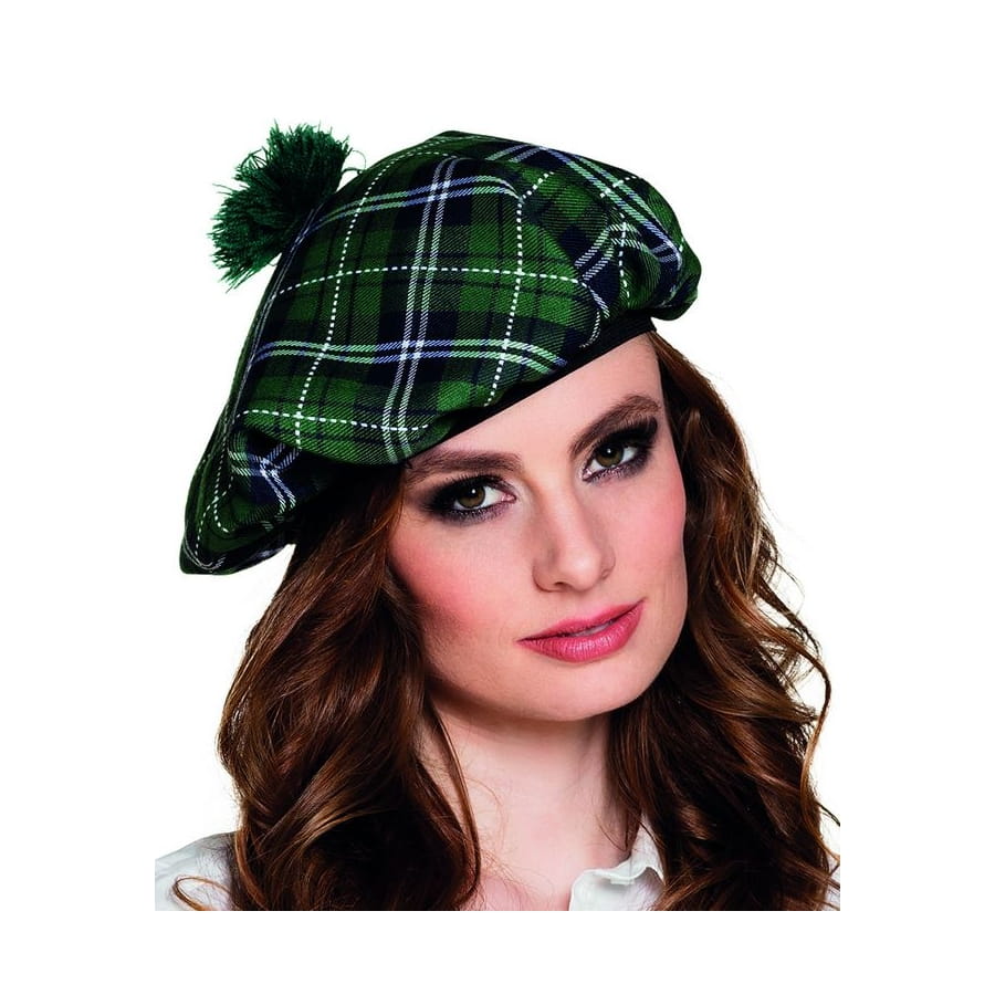 Le béret vert écossais pour femme est un couvre-chef imprimé de carreaux verts et blancs.