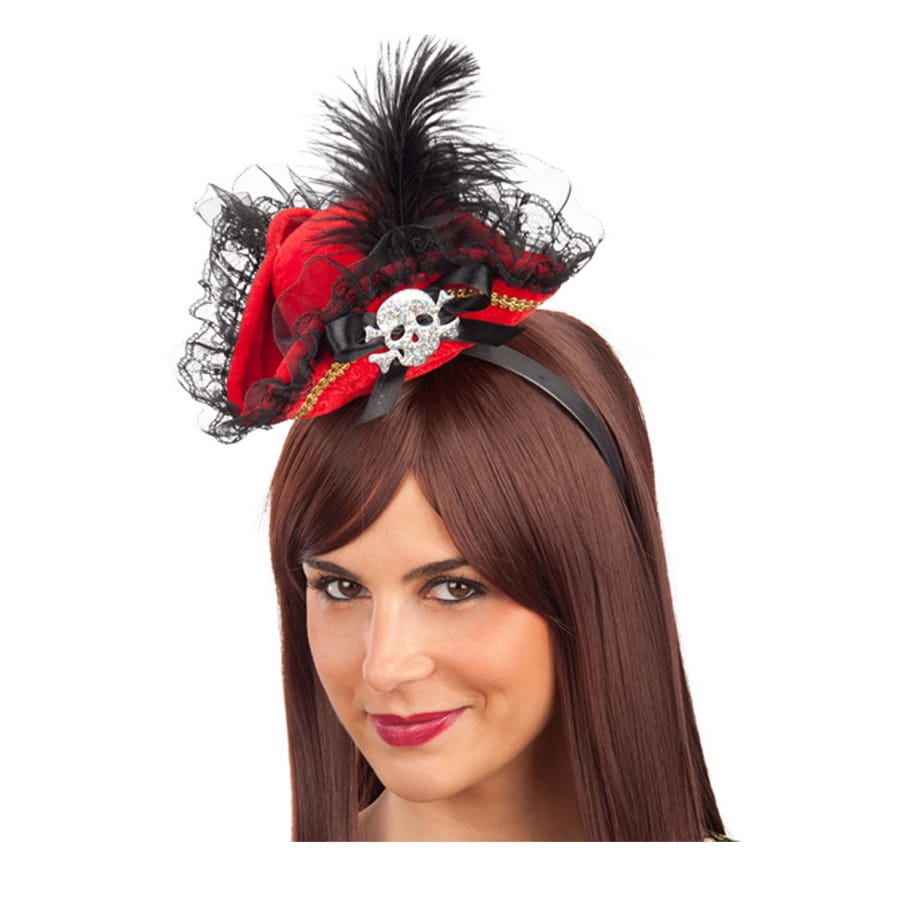 C'est un serre-tête noir surmonté d'un petit chapeau tricorne de couleur rouge avec un liseré doré.