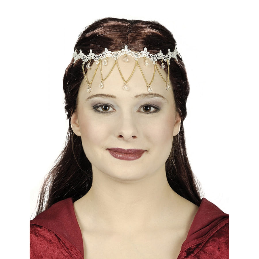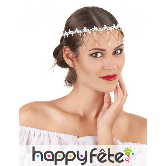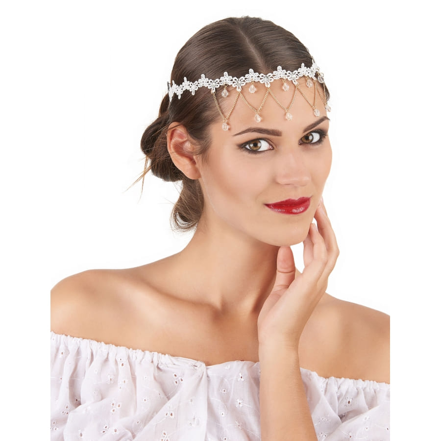 Préparez le prochain carnaval en optant pour un look de princesse orientale, avec notre bijou de tête blanc avec gemmes transparentes.
