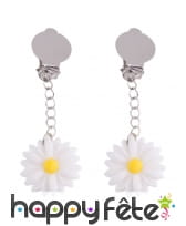 Une paire de boucles d'oreilles pourvues d'une chaînette pendante au bout de laquelle se trouve fixée une petite fleur