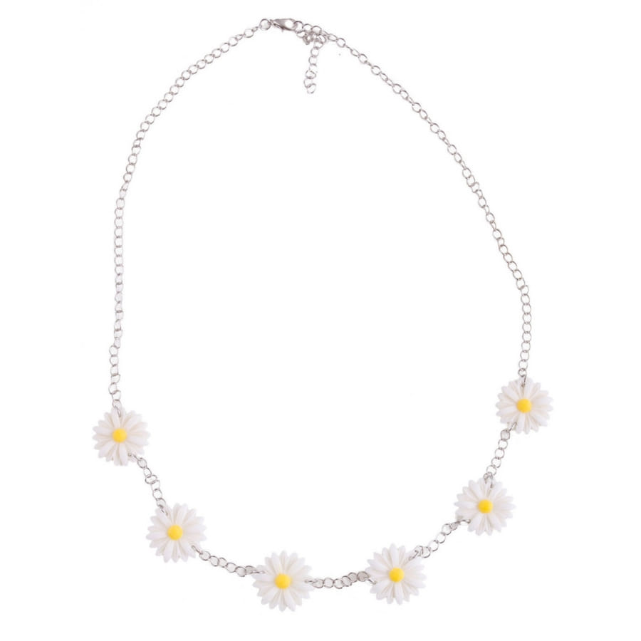 Un collier de 6 petites marguerites doté également d'une chaînette argentée