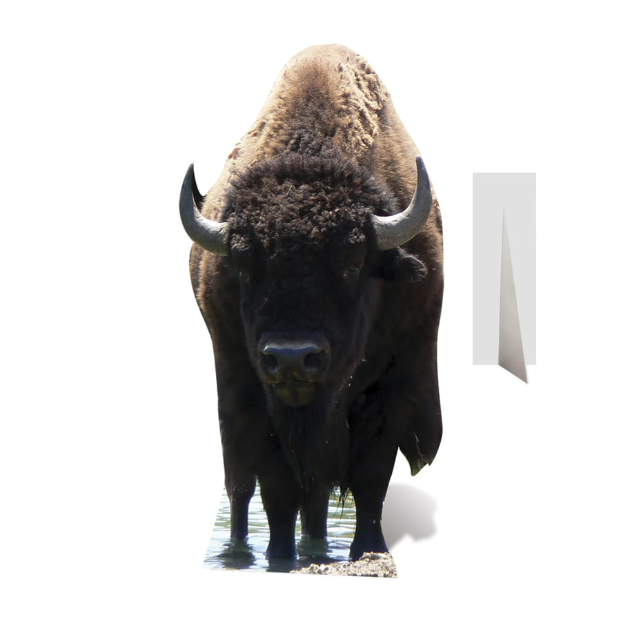 Les bisons, on n'en voit pas tous les jours. Heureusement que nous avons cette silhouette de bison en carton de taille réelle que vous pourrez utiliser, pour orner une salle de fête par exemple. En plus de cela, elle est géante car a une hauteur de 180 cm et montre une jolie photo de bison de couleur marron, avec sa grosse fourrure et ses cornes acérées.