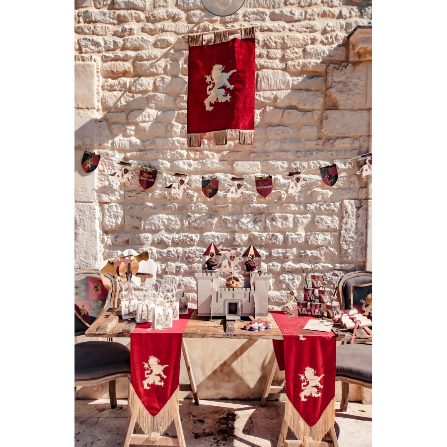 Qu'il s'agisse d'un anniversaire sur le thème des châteaux, d'une fête médiéval ou de tout autre évènement sur ce thème, ce blason armoirie du lion prendra une place idéale.
