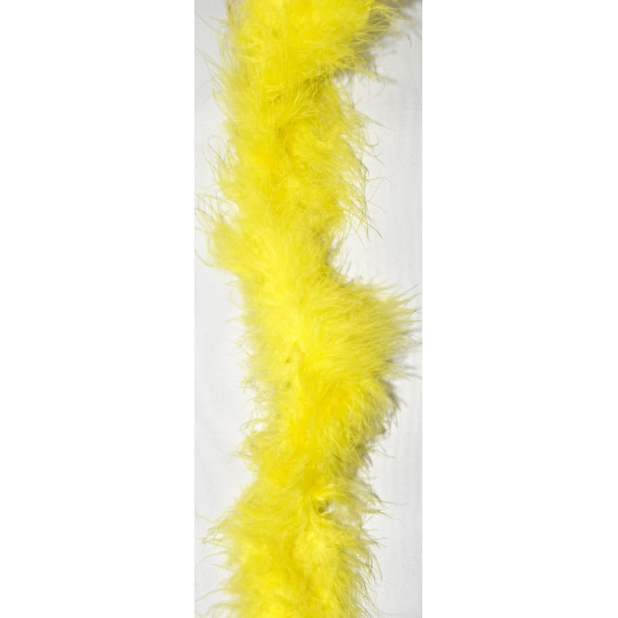 Boa en marabout de couleur jaune, pour femme ou adolescente. Cet accessoire mesure 200 centimètres de longueur. Cet accessoire simple vous permettra de compléter un déguisement de star, de danseuse, de Drag Queen, de séductrice ou de vieille excentrique.