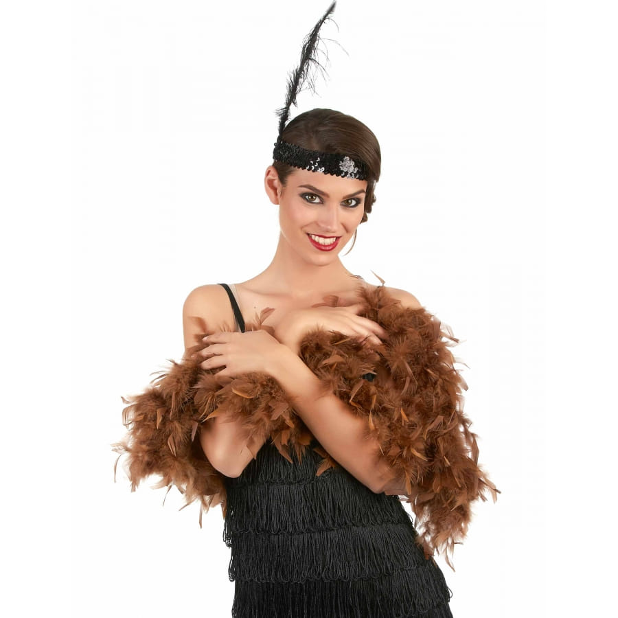 Avec ses magnifiques et douces plumettes marron vous pourrez le combiner à un grand nombre de vêtements pour un style sexy ou l'utiliser pour décorer des tables ou des fauteuils pour un effet distingué très classe.