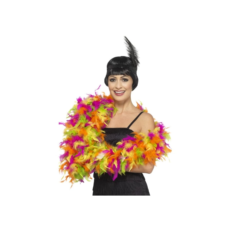 Mesdames, laissez-vous envahir par les belles couleurs de ce boa multicolore coloris néon. Cet accessoire fashion brille de mille et une manières, reflétant tantôt du fuchsia, tantôt du jaune, de l'orange ou du vert fluo. Vous pourrez donc choisir n'importe quel ton de vêtement pour aller avec et constituer un superbe déguisement à l'occasion du carnaval ou de la Saint-Valentin, dans un style très charleston.